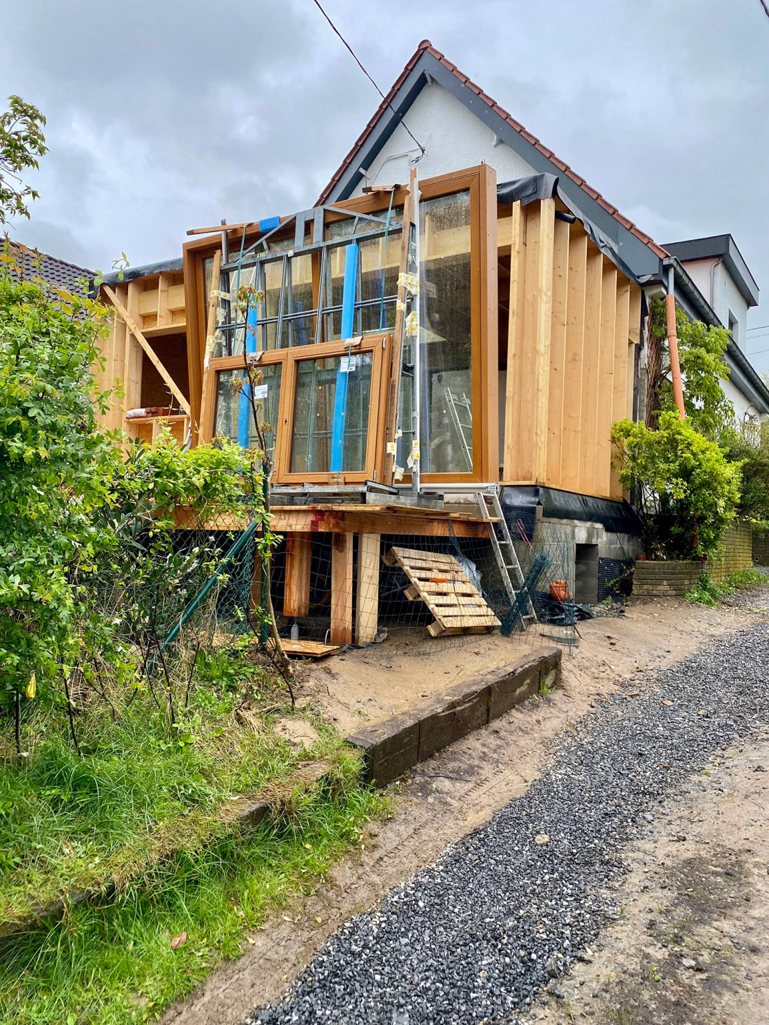 Le Maître d’ouvrage souhaitait orienter les pièces de vie de sa maison vers le jardin. L’idée étant de créer une « cabane » en prolongement de l’existant, au niveau des arbres du jardin et cadrer la vue sur la vallée.